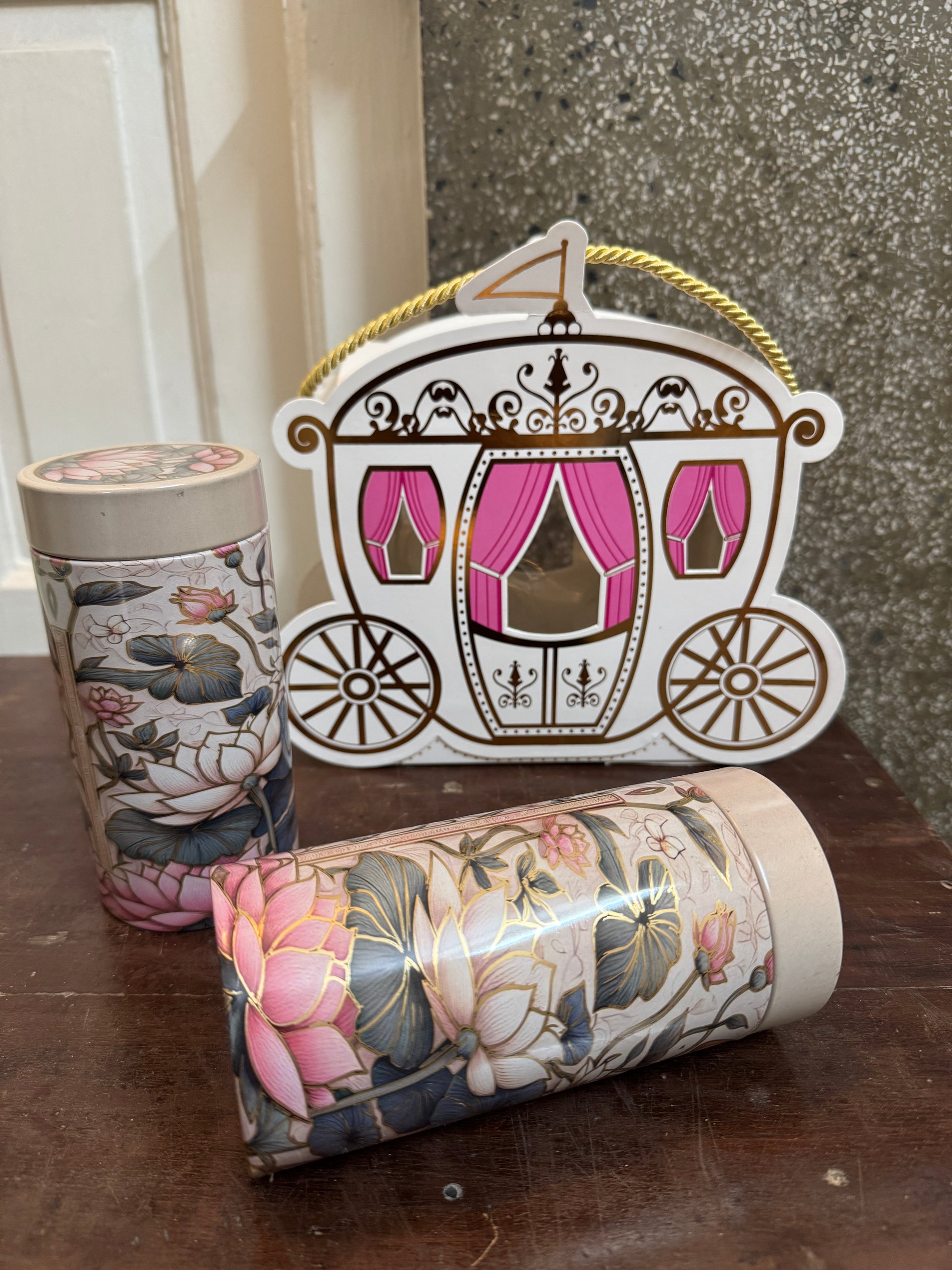 This Baby Shower Carriage Gift Tin Set is the perfect present for new parents. With two 6-inch tins filled with assorted goodies, it's sure to bring joy and convenience to any baby shower. It's a thoughtful and practical gift, perfect for welcoming a new addition to the family.