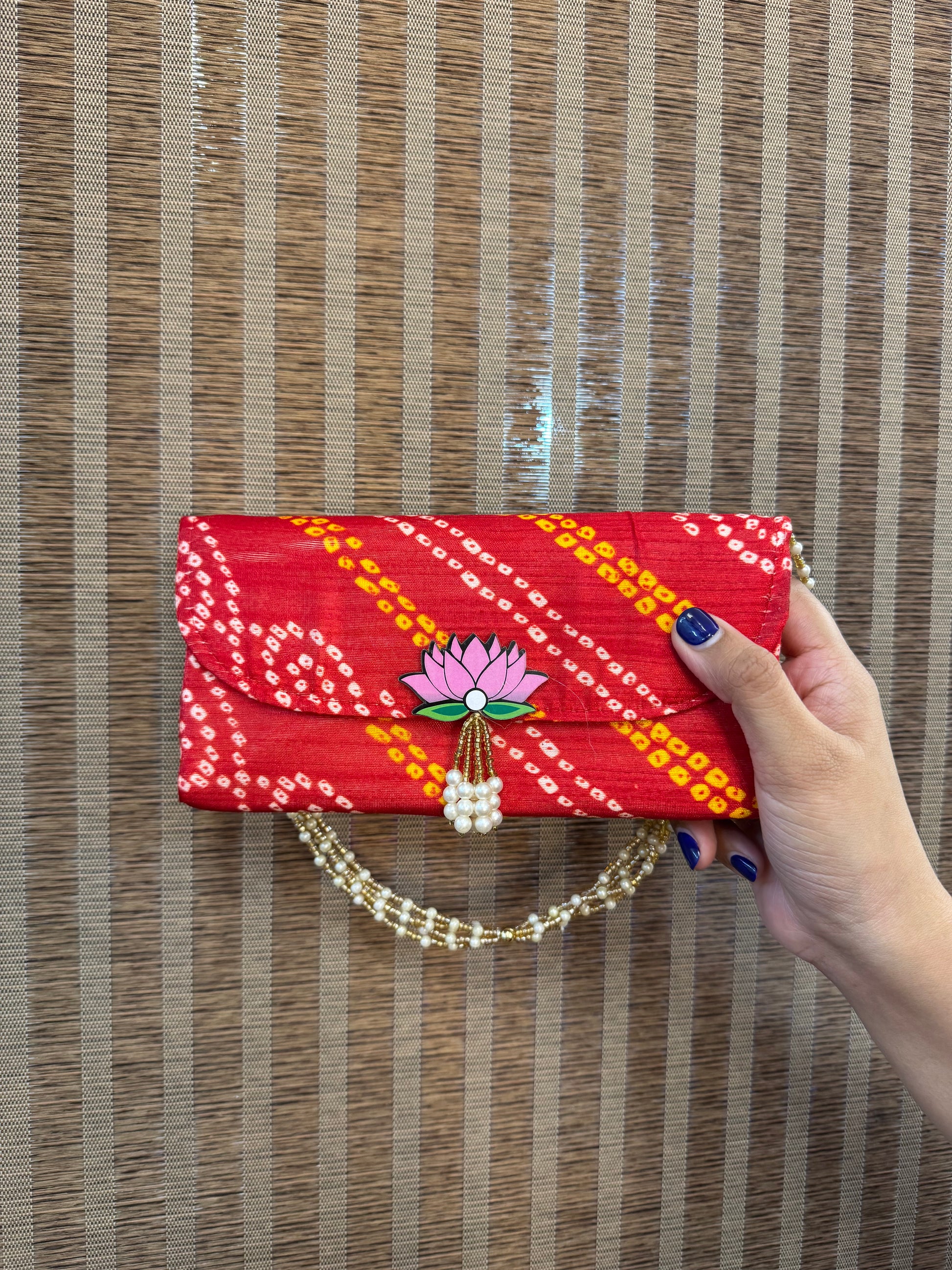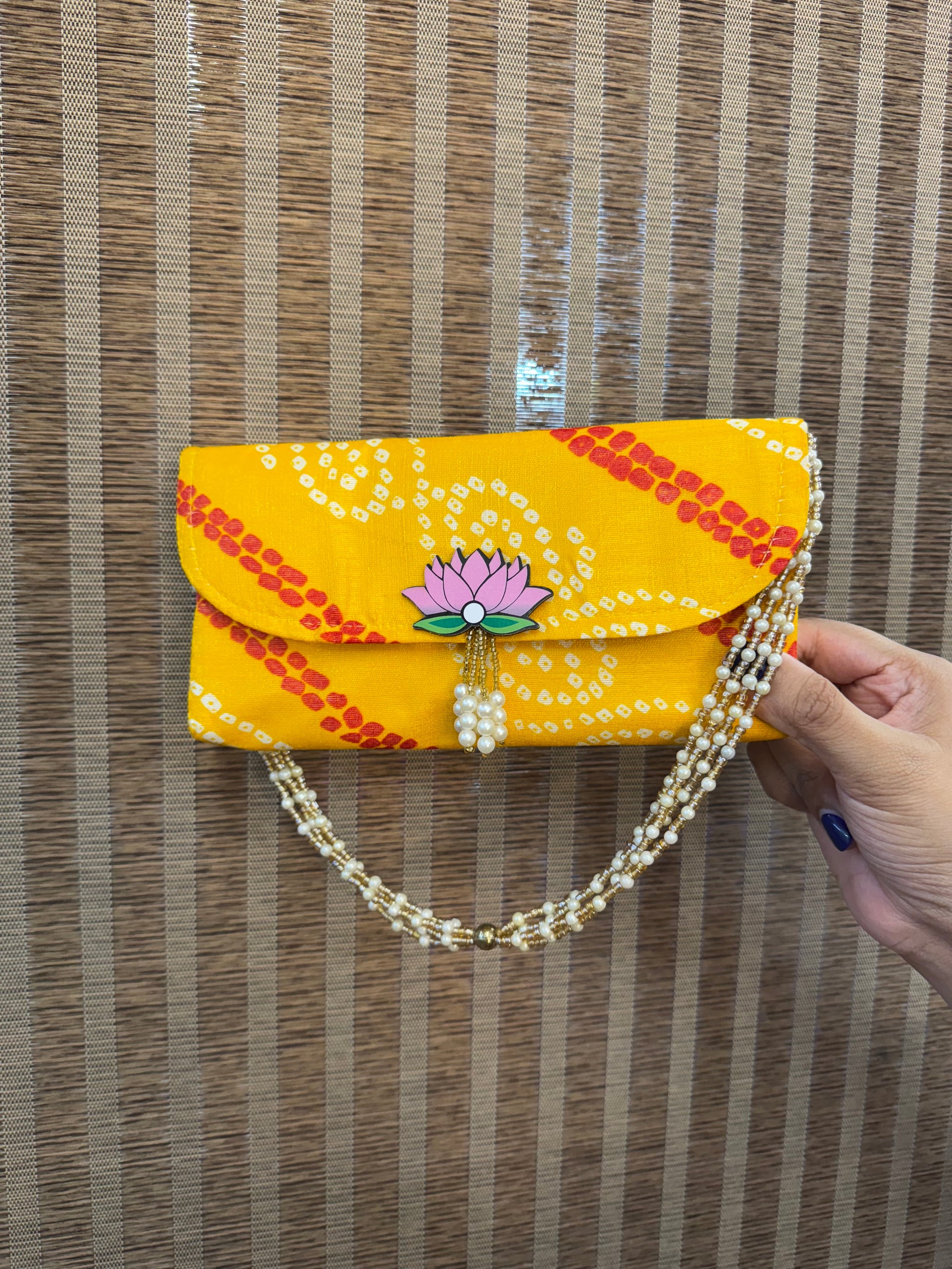 This Bandhej sling wallet combines traditional Indian textile design with modern functionality. The sturdy strap allows for easy carrying, while the compact size fits comfortably in any pocket or bag. Made from high-quality materials, this wallet is both stylish and durable. Perfect for adding a touch of culture to your everyday essentials.