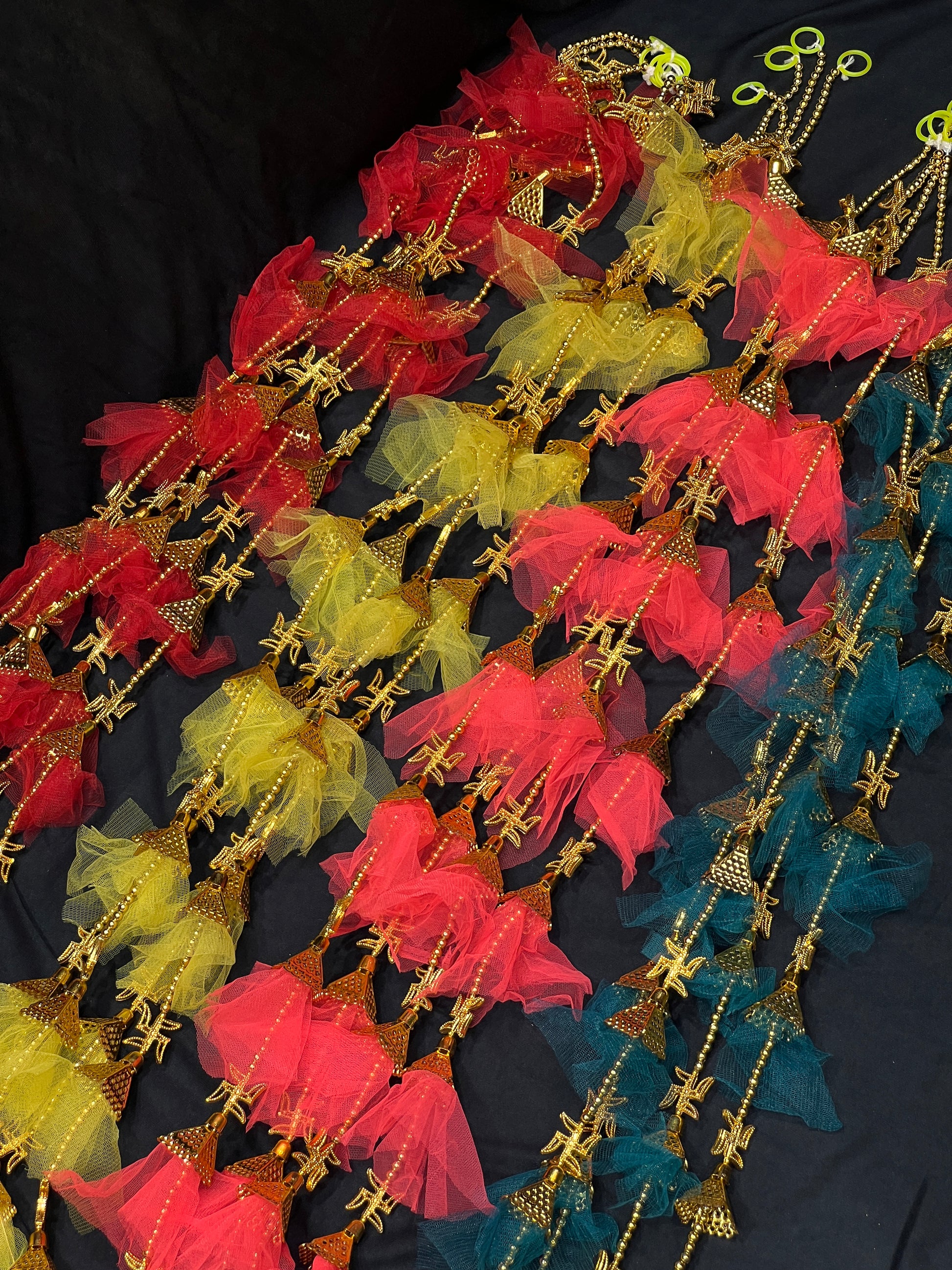 This Door Toran is an elegant and traditional decor piece, perfect for adding a touch of sophistication to your home. Made with high-quality materials, it features intricate designs that will impress any guest. Enhance the beauty of your door with this exquisite Door Toran.