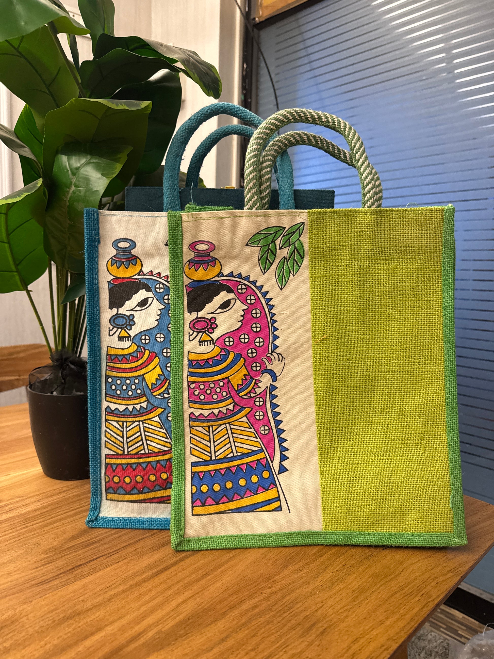Crafted from natural jute, this Kalamkari Jute Bag is eco-friendly and durable. With its unique handprinted design and spacious interior, it's perfect for carrying groceries, books, or beach essentials. Plus, you'll be supporting sustainable fashion with every use.