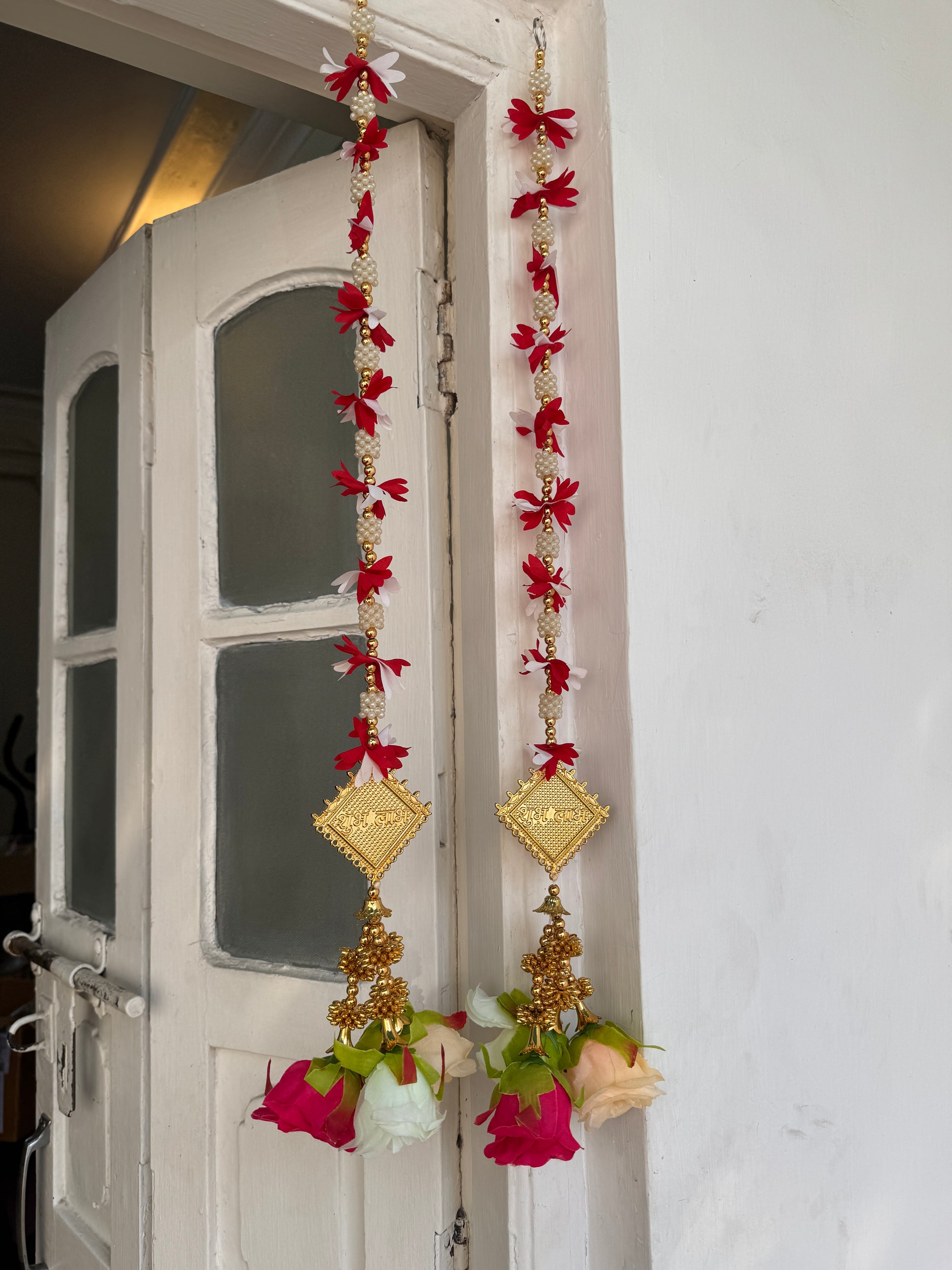 Introducing our handmade Door Toran, perfect for adding a festive touch to your home for Diwali. Made with meticulous craftsmanship, this Door Latkan will bring a traditional and elegant look to your door. Enhance the beauty of your entrance and welcome prosperity with our unique and high-quality product.