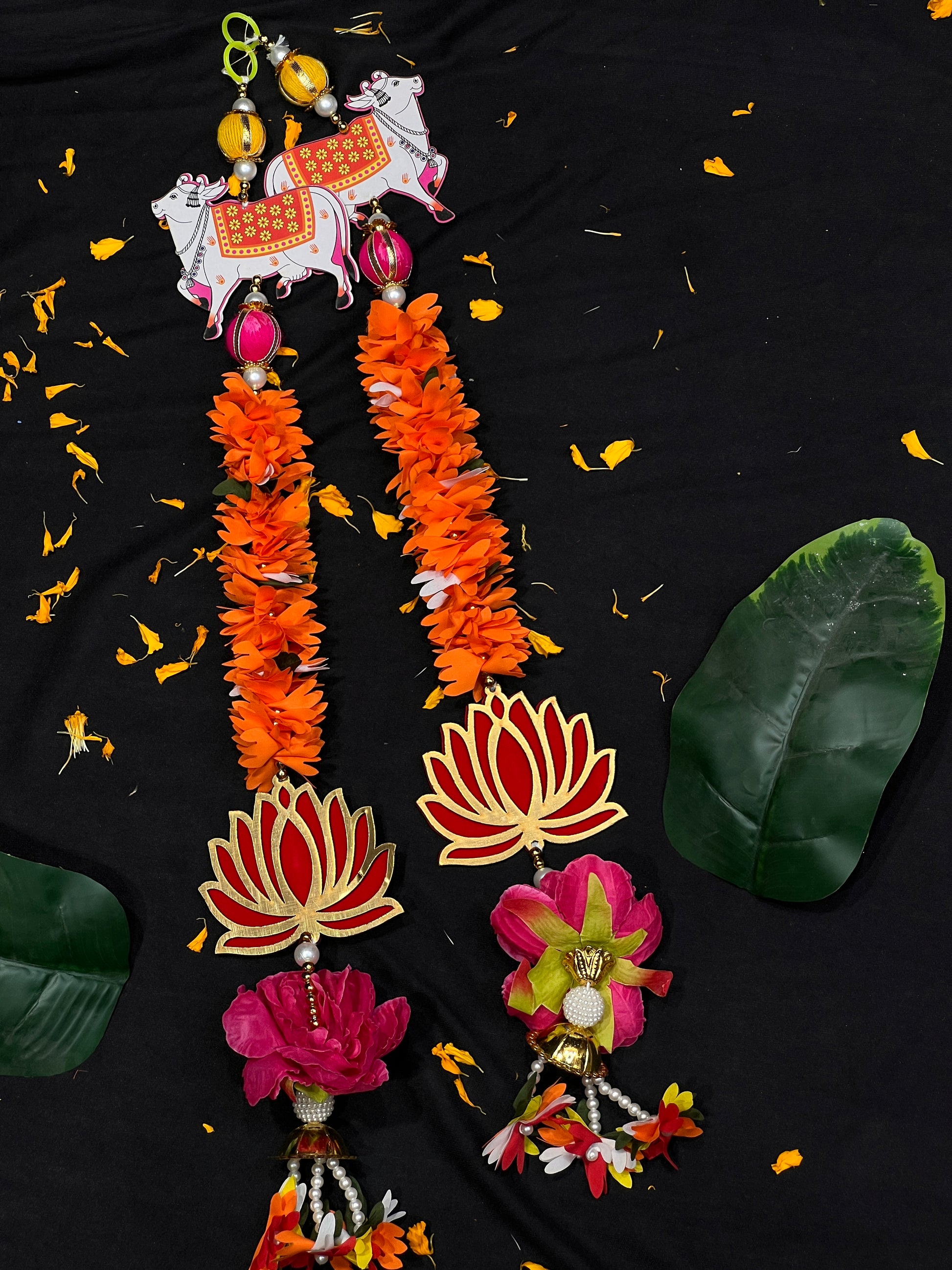 Experience the vibrant traditions of India with our Pichwai Door Toran. Handcrafted with intricate designs and vibrant colors, this piece serves as both a door hanging and a toran for Diwali celebrations. Bring a touch of culture and beauty to your home.