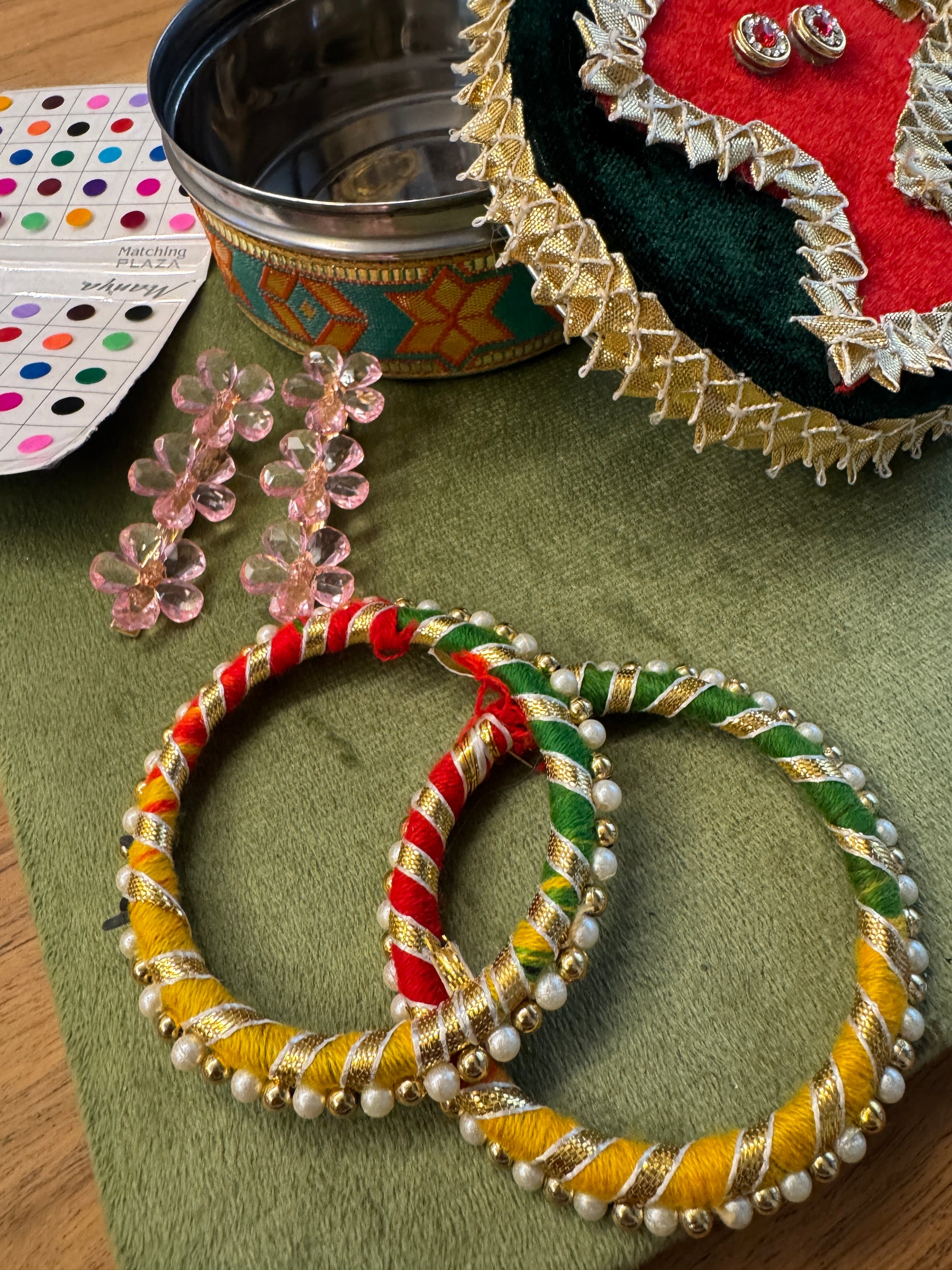 Celebrate Lohri and Sankranti with this Stainless Steel Dabba Gift Hamper. The Dabba includes a bangle hair pin and bindi for the traditional festivities. Made with sturdy stainless steel, it's perfect for storing and gifting traditional treats. Start your celebrations with this beautiful and functional hamper.